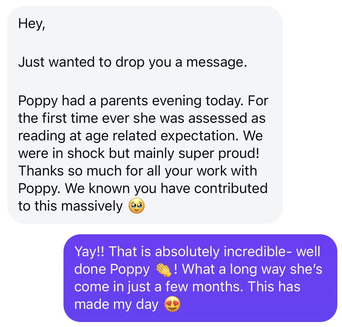 "David was behind when he first started, but in just 10 weeks the progress has been incredible. Even his grandma and grandad have noticed a big change! His pronunciation has improved so much, he’s moved up several book bands, and he’s now reading with confidence. It’s been amazing to watch his confidence grow. What I love most is how excited he is for every session – he genuinely looks forward to them, and that joy in learning has made all the difference. As a parent, seeing your child happy and thriving is everything. I often find myself thinking, how did Inspired Minds Learning manage it! The reality is, schools simply don’t have the time to read with every child every day. When your child starts to fall behind, it’s so important to act. I’m really glad we did. These phonics lessons have given David the boost he needed – and so much more." - Mercy Offer