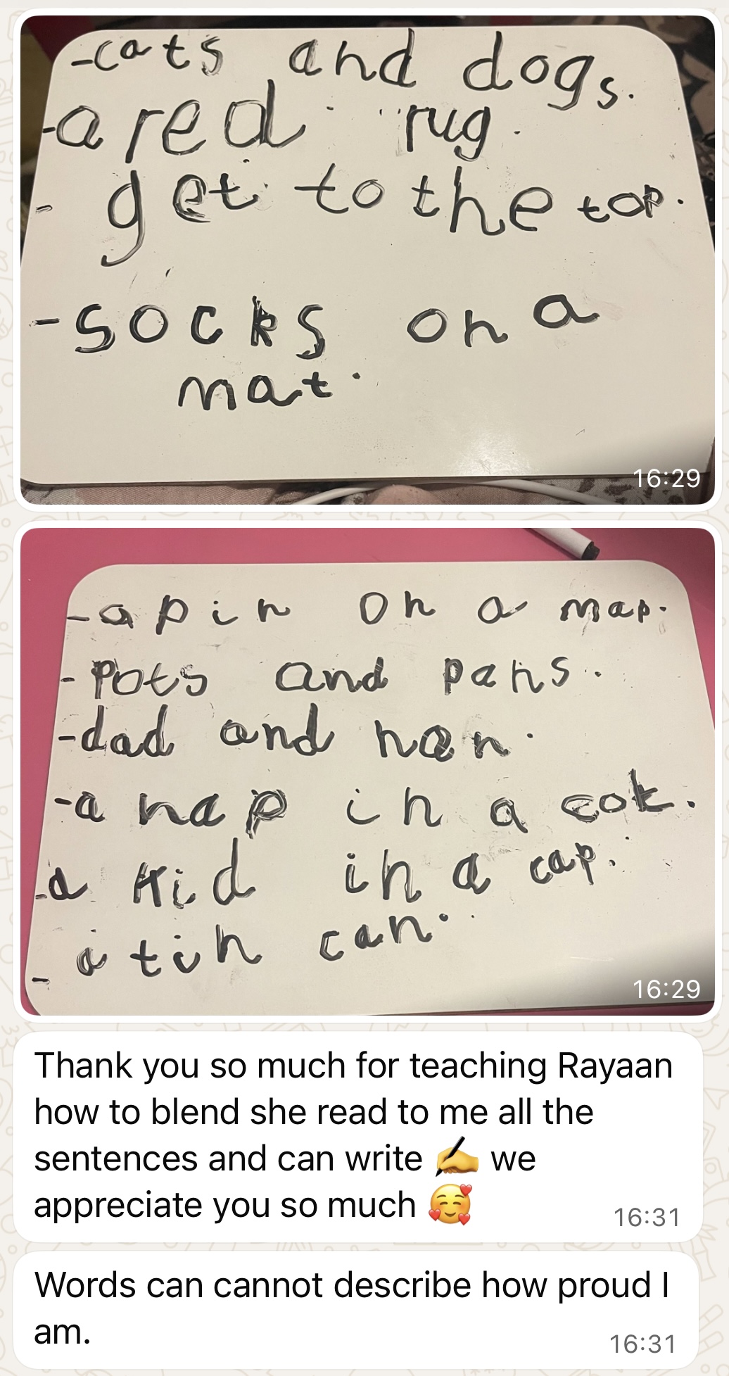 "Noah is definitely most definitely, more able to read. I can see it already myself.. He's getting it more and he's loving it... He is doing really, really well and he enjoys his lesson... It's the best thing I ever did" - Lucy Dhaliwal